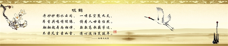 鶴!不僅僅是美麗、高貴、優雅、富有靈氣的稀世之鳥、湘鶴人更感受到她那飛翔的魅力,領略她那更善于搏擊的斗志、勇于弄潮的氣派,當她展翅高飛直上藍天時,真有一種鳥瞰大地、一覽眾山小的氣魄和駕御未來的豪邁。她是一只與成功同行的文化之鶴!