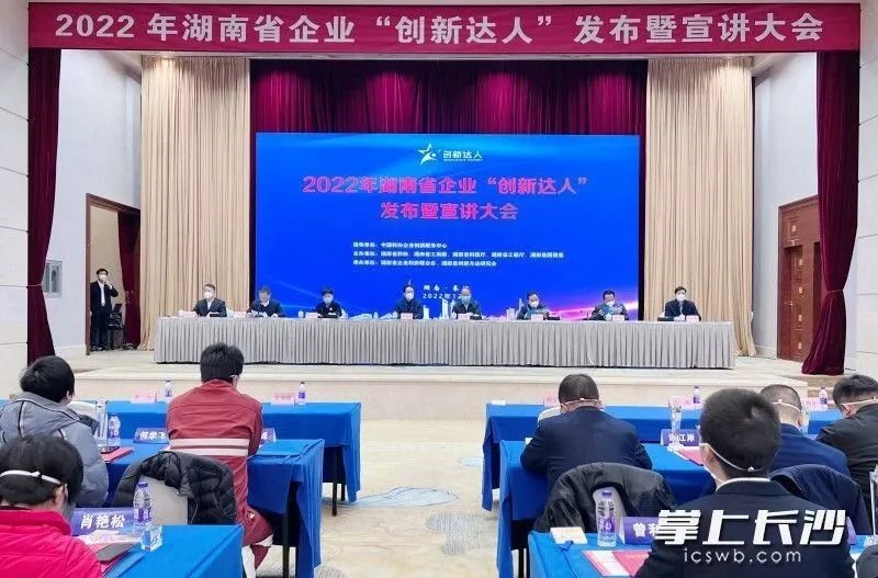 2022年12月15日,由湖南省科協聯合省工商聯、省科技廳、省工信廳、省國資委共同組織舉辦的2022年湖南省企業“創新達人”發布暨宣講大會在長沙舉辦。省科協黨組書記、常務副主席王瑰曙出席大會并致辭,省工商聯黨組成員、秘書長陳夕林,省工信廳黨組成員、副廳長彭濤,省國資委黨委委員、副主任毛育新,省科協副主席李為、周后德,省科協黨組成員、辦公室主任馬文勝出席活動并為“創新達人”頒發獎杯和證書。