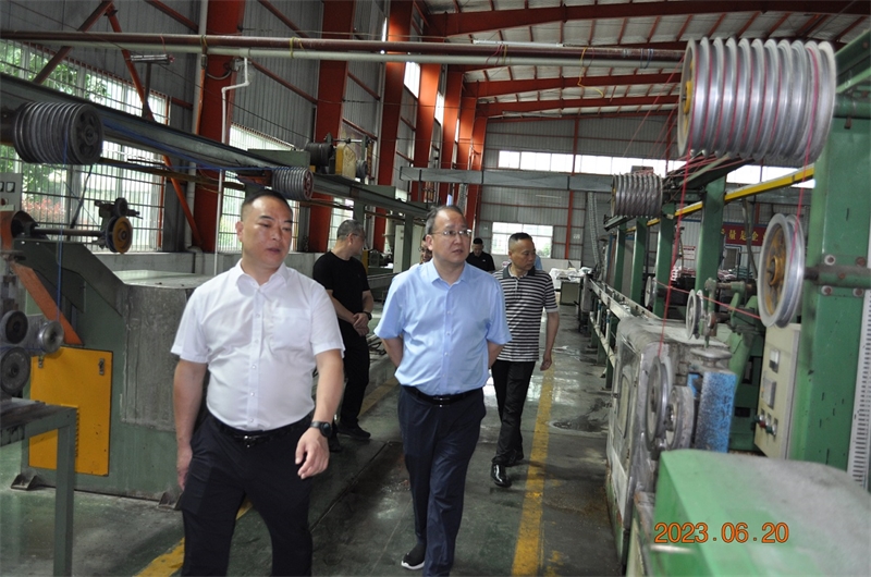 2023620日上午,湖南省工商聯黨組成員、秘書長陳夕林,二級調研員張杰文等領導一行在懷化市工商聯副主席李志,秘書長宋祖軍等領導陪同下來到湖南湘鶴集團電纜科技股份有限公司調研指導。湖南湘鶴集團電纜科技股份有限公司董事長王茂卿,總經理王茂楓等公司領導陪同接待。